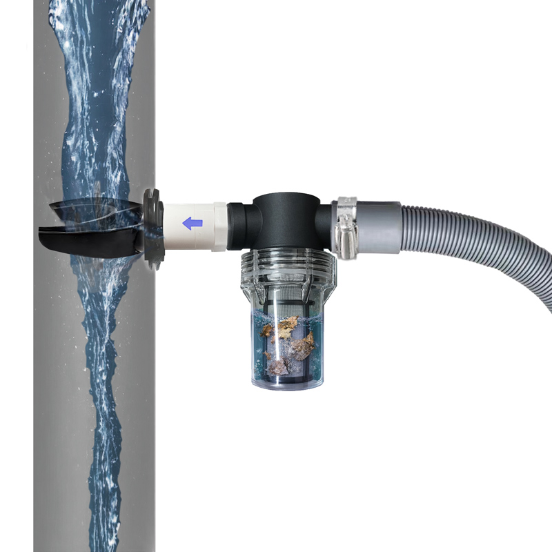 Dieses hochwertige Komplett-Set ermöglicht es Ihnen, Ihre RAIN-FLEX oder jede andere Regentonne schnell und sicher an das Fallrohr anzuschließen. Der integrierte Filter hält Laub, Schmutz und grobe Verunreinigungen zurück, sodass nur sauberes Regenwasser in die Tonne gelangt.