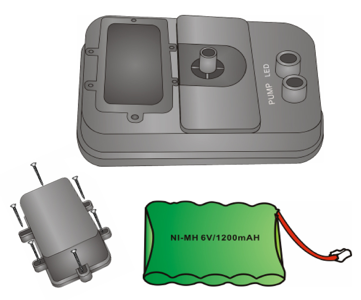 WICHTIG! Es muss sichergestellt werden, dass die Akkuabdeckung gut angezogen und wasserdicht ist. Batterietyp: Ni-MH 6.0V/1200mAh