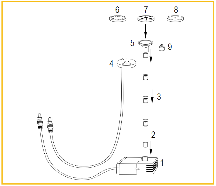 - Stecken Sie den Pumpen-Stecker mit einer leichten Drehung in den Pumpensockel. Wiederholen Sie diesen Vorgang mit dem Lichtstecker und dem Lichtsockel. Vergewissern Sie sich, dass der Dichtungsring sicher sitzt.