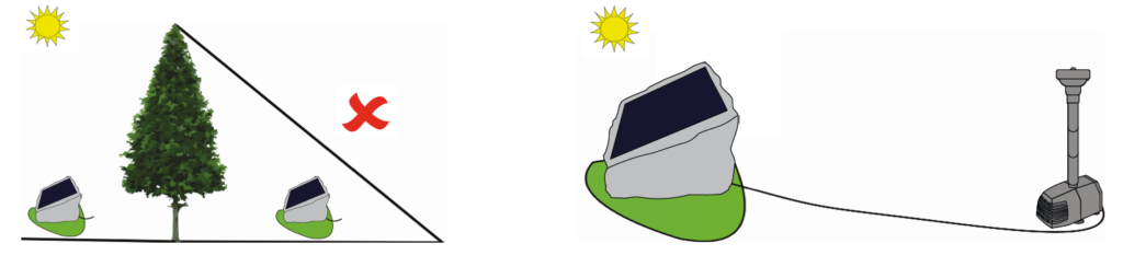 - Positionieren Sie das Solarpanel so, dass es direktes Sonnenlicht erhält. Die Pumpe kann nicht funktionieren, wenn die Solarzelle beschattet wird.