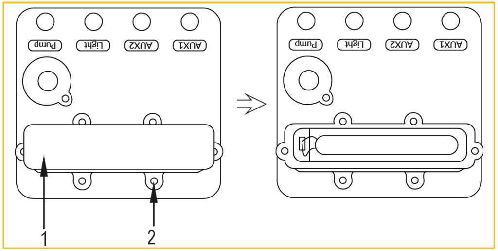 - [AUX1] [AUX2] Sockel für Batterie-Ladegerät (versiegelt)