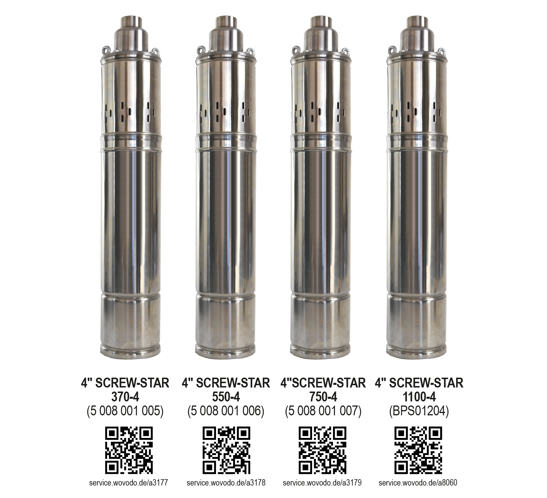 3″SCREW-Star 1100-4-230V![]() (BPS01202) | 3″ BRUNNEN-Star 750-4, Impellerpumpe![]() (5 007 006 006) | 4″SCREW-Star 370-4-230V![]() (5 008 001 005) | |