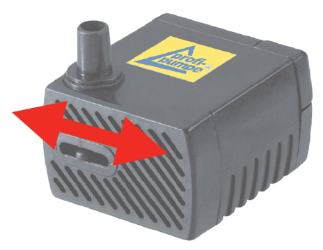 Unsere Zimmerbrunnen werden je nach Größe mit verschieden Pumpen ausgerüstet. Die Pumpen sind mit Reglern ausgestattet, die ein individuelles Einstellen des Wasserflusses ermöglichen. Unten aufgeführt sind die häufigsten Reglertypen (bitte beachten Sie die +/- Symbole auf der Pumpe).